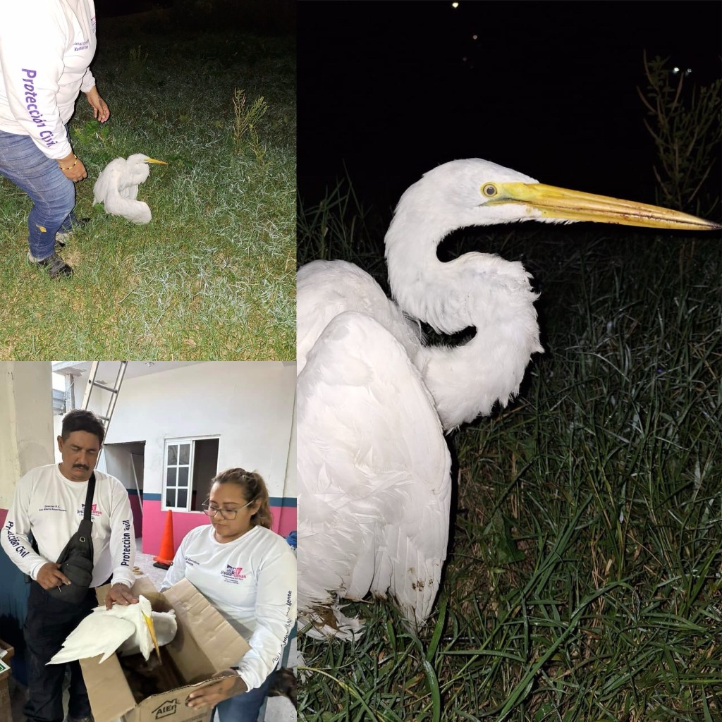 Posteriormente, los «cuatrimoteros» trasladaron a la garza a la base de protección civil en la cabecera de Úrsulo Galván para resguardarla mientras localizaban a un veterinario.