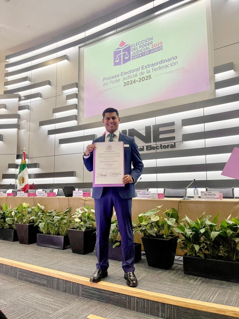 El abogado veracruzano Pedro Pablo Castillo Meza, de 34 años oriundo de la localidad galvanense de Cempoala, recibió este jueves su constancia oficial como juez federal en materia mixta, durante un acto solemne celebrado en las oficinas centrales del Instituto Nacional Electoral (INE), en la Ciudad de México.