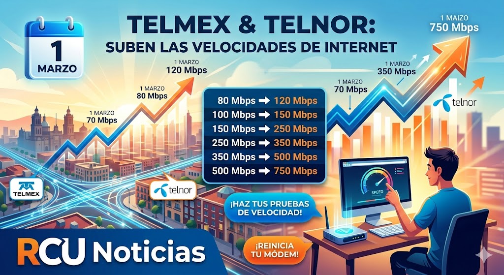 CIUDAD DE MÉXICO. – A partir del pasado 1 de marzo, usuarios de las operadoras Telmex y Telnor han reportado un incremento sustancial en la velocidad de sus servicios de internet de fibra óptica a nivel nacional. Esta actualización se realiza de manera automática y busca fortalecer la competitividad de las empresas frente a la creciente demanda de ancho de banda.